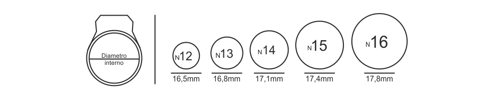 Ejemplo: si el diámetro interior es 16,5 mm, tu N° de anillo es 12!